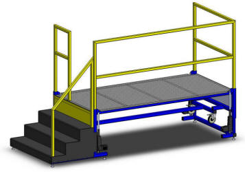 The Fixed Steps Platform is one of LTW’s industrial electrically height adjustable operator platforms that raises and lowers with the touch of a button. In contrast with the Adjustable Steps Platform (Gen II), the Fixed Steps staircase does not automatically adjust with the platform (see how the Adjustable Steps Platform works here). Instead, the staircase remains in a fixed position.
