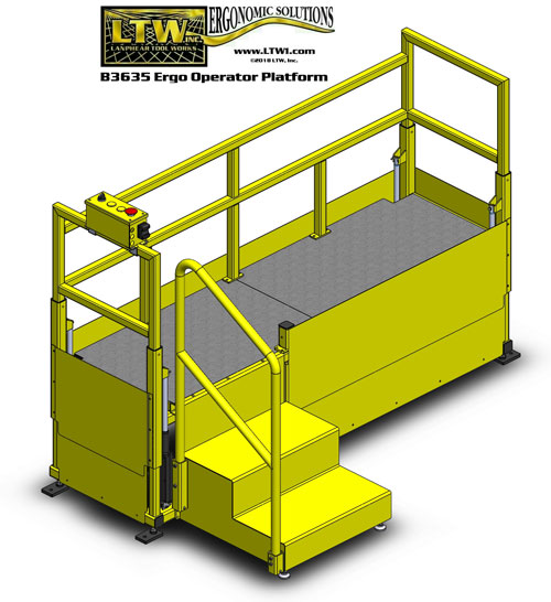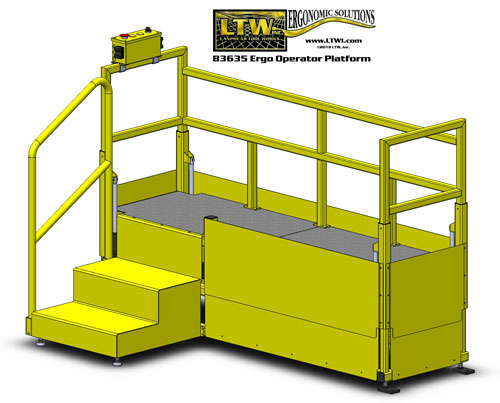 LTW’s Height Adjustable Operator Platform with fixed steps allows you to effortlessly adjust your operator’s work height to your large assembly lines or machinery!