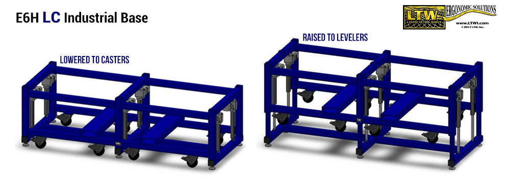 The LTW E6H Base adds industrial height adjustability to your large and heavy machines, with customizable lift of 10,800lb+!