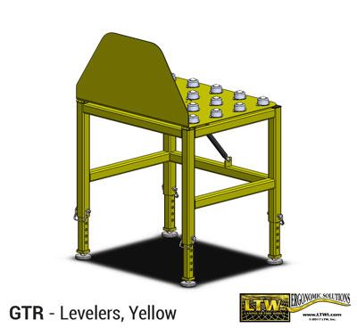 The four legs of the GTR Stand are manually adjustable with a pin system so you can customize the table height for your workspace. For portability, choose 5″ Swivel Locking Casters, and for use in a more permanent location, opt for Leveling Feet.